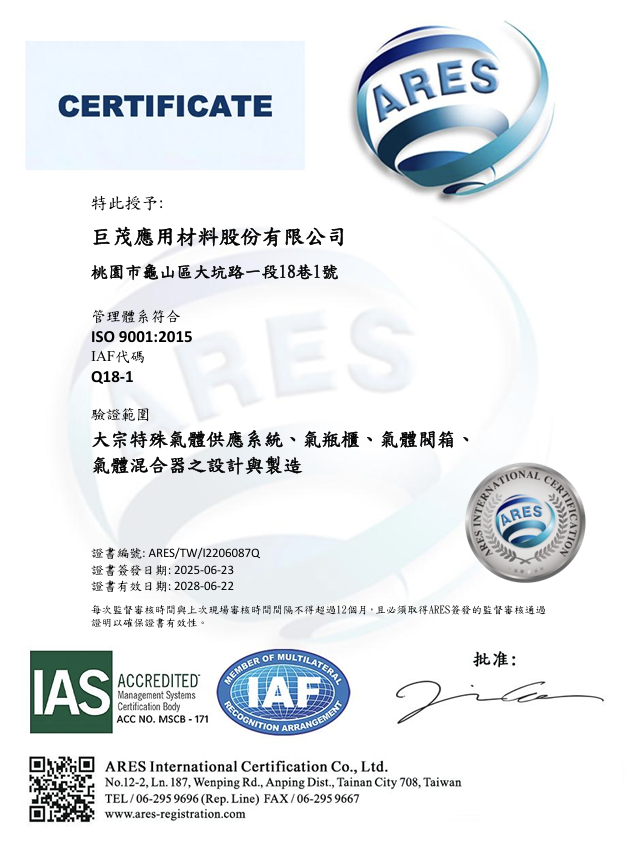 本公司在全體員工努力下,在2016年3月J-MATERIAL獲得證書和安全評估報告,我們通過文件審查, 審計, 整體功能安全評估, 電氣安全相關需求審查, 最終評估及現場測試, 報告製作,技術支援等基本評估程序,於2016年3月J-MATERIAL自製設備通過了SEMI S2設備環境衛生安全基準認證,經由國際認證肯定J-MATERIAL設備的結構與功能安全性;SEMI S6半導體製造設備通風排氣,我們採用高效益設計的排氣通風設施可防止人員、財產及環境之健康與安全受到不必要的傷害,我們比你們更重視你們的安全;SEMI S22半導體製造設備電器設計安全我們於設計的過程中消除危害,縱使勞工疏忽或機械組件故障也不致於造成危險,而導致職業災害的發生。